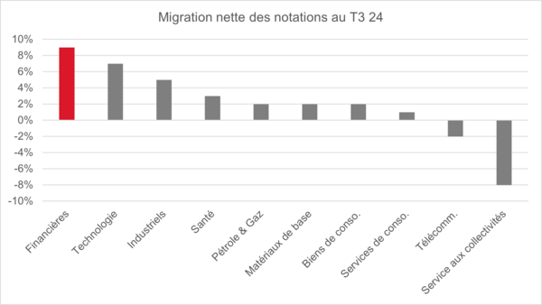La seule ombre au tableau est la tendance défavorable sur les banques françaises. La dégradation de la note souveraine de la France par Moody’s, passée de Aa2 à Aa3 en décembre, a entraîné une dégradation mécanique de la notation senior préféré des banques françaises en raison d’une capacité de soutien gouvernemental plus faible.