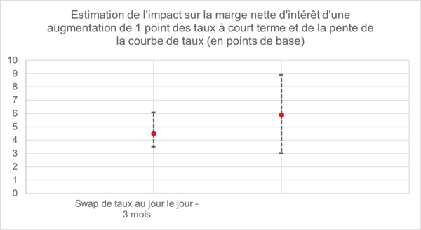 Pour conclure sur la sensibilité aux taux, il faut considérer non seulement la sensibilité au niveau des taux à court terme, mais également à la pente de la courbe. Se concentrer uniquement sur la première serait une erreur, car les deux variables sont tout aussi importantes pour la marge nette d’intérêt.